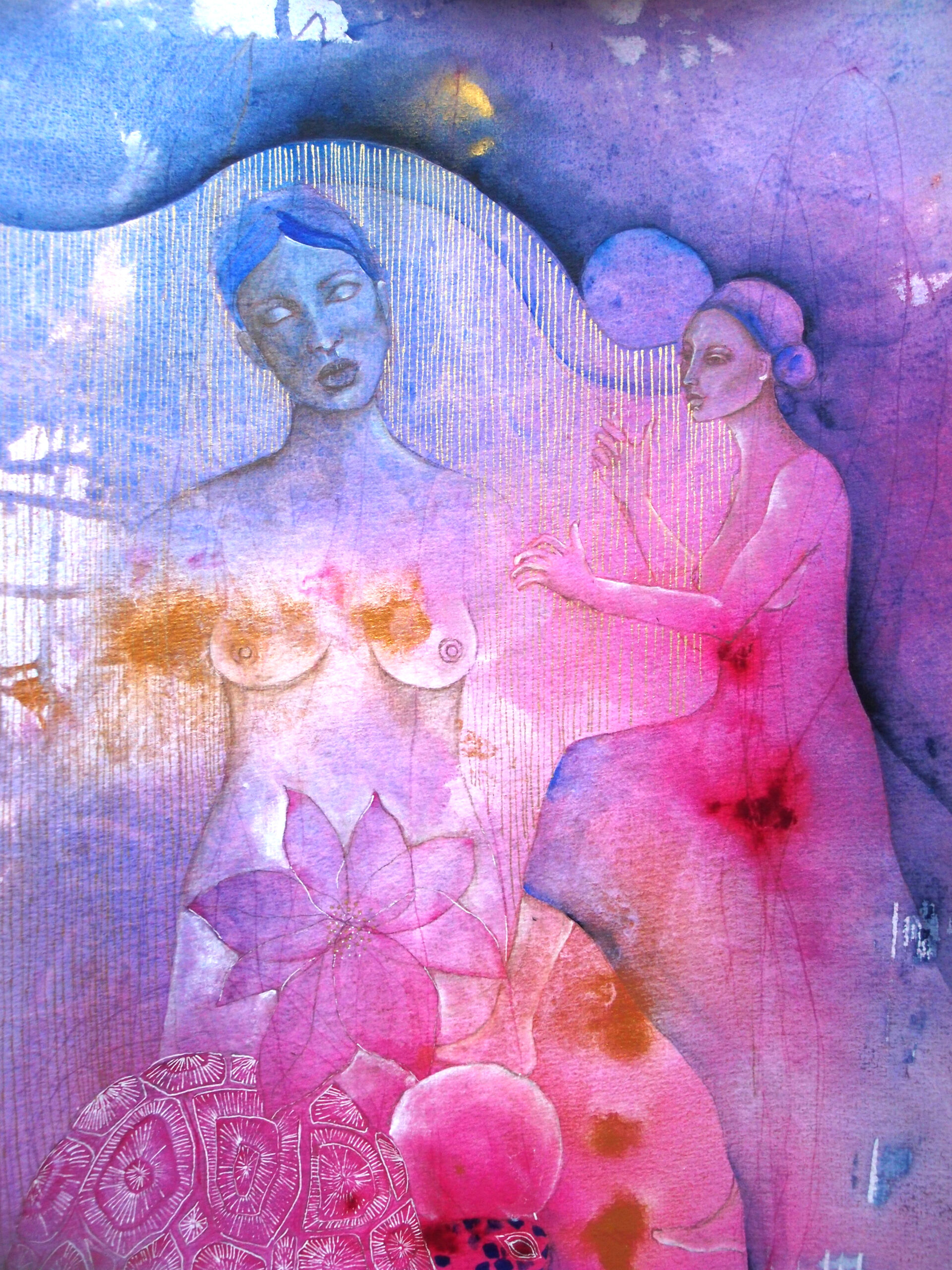 Harfa obraz oryginalny namalowany techniką mieszaną na papierze do akwareli.