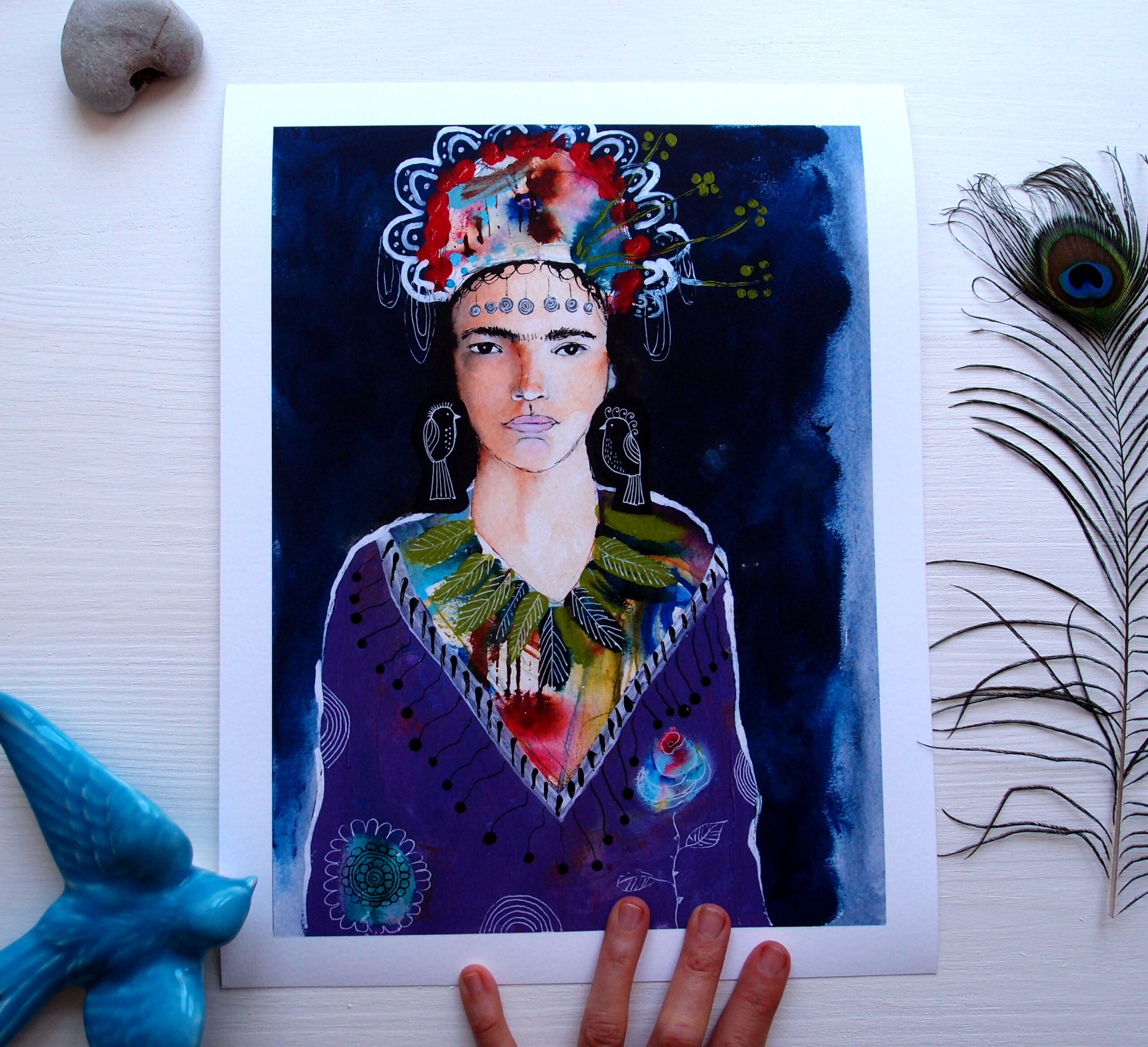 Królowa dżungli fine art print, wysokiej jakości wydruk artystyczny, portret dzikiej, wolnej kobiety, indianka