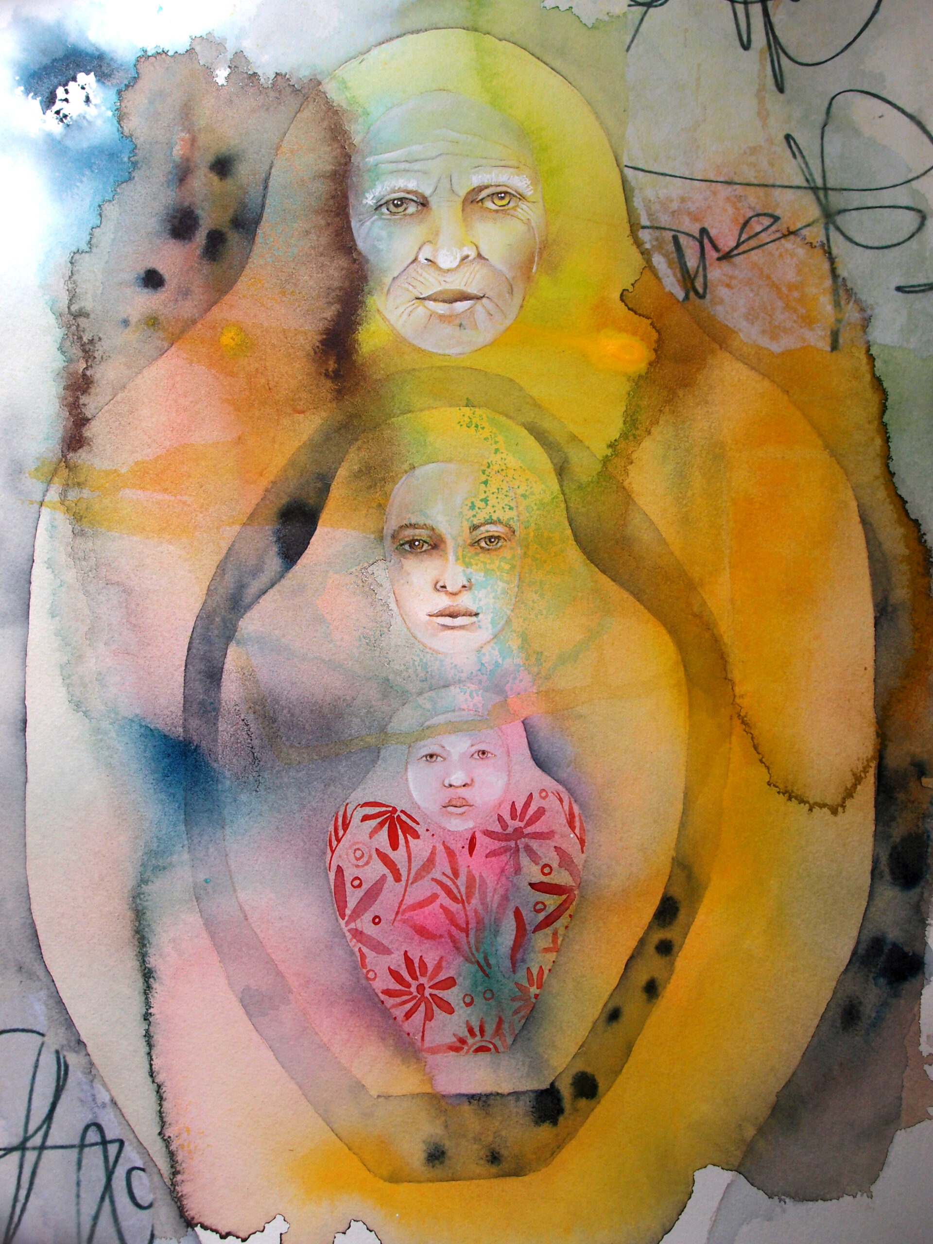 Przodkinie – obraz oryginalny namalowany techniką mieszaną na papierze do awareli.