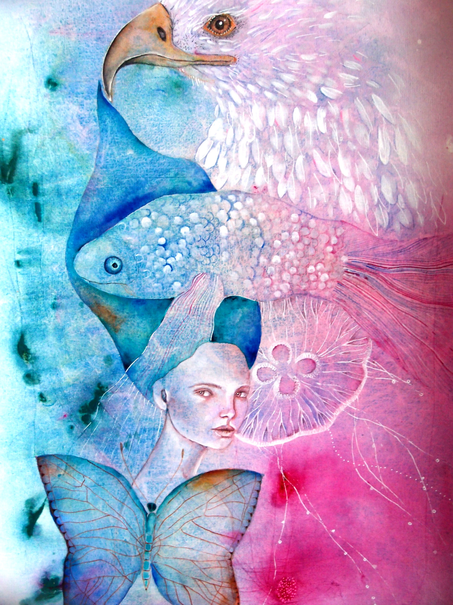 Totem orzeł meduza motyl, wysokiej jakości wydruk artystyczny A5